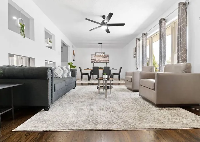 Glam Paradise 5Brs Downtown Dallas Villa features rooms with views of the garden. It has 4 bedrooms. It also includes 4 bathrooms.